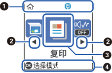 显示安静模式设置,可用于减小本产品发出的噪声。但是,启用此选项可能会降低打印速度。根据选定的打印纸类型和打印质量设置,本产品的噪声级别可能无任何差别。也可以从设置菜单进行此设置。