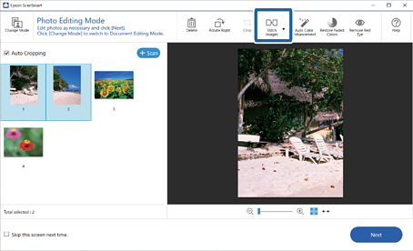 Você pode combinar fotos digitalizadas para criar uma única imagem.