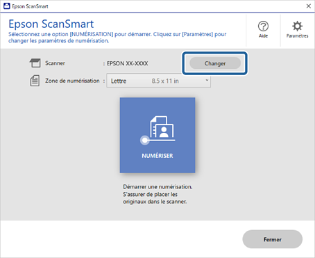 1Cliquez sur Changer dans la fenêtre Epson ScanSmart.
