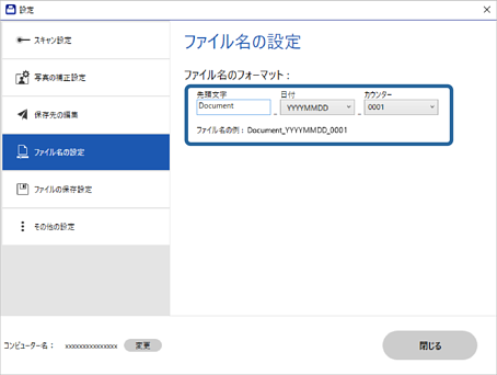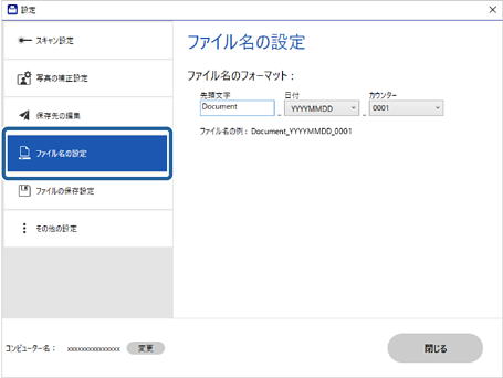 ファイル名の設定を変更する