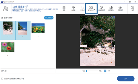 スキャンした写真を貼り合わせて、一つの画像を作成できます。