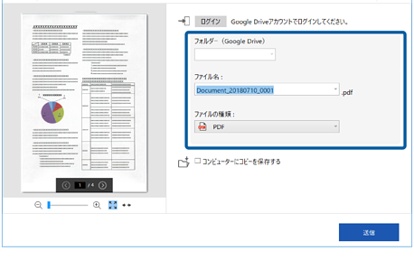 4保存先の選択画面でスキャンした画像の保存方法を選択します。