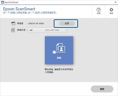 點按 [Epson ScanSmart] 視窗內的 [變更]。