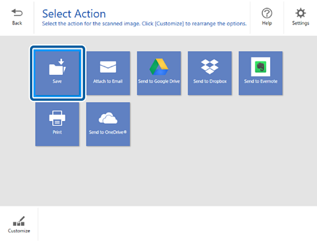 Dosya adlandırma yöntemlerini değiştirebilirsiniz. Geri öğesini tıklatarak Eylemi Seç penceresine geri dönün ve Ayarlar öğesini tıklatın. Dosya adlandırma yöntemlerini değiştirmek için Dosya Adı Ayarları sekmesini tıklatın.