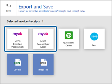 Click MYOB Essentials/AccountRight or MYOB AccountRight(Local) in the Export and Save window.