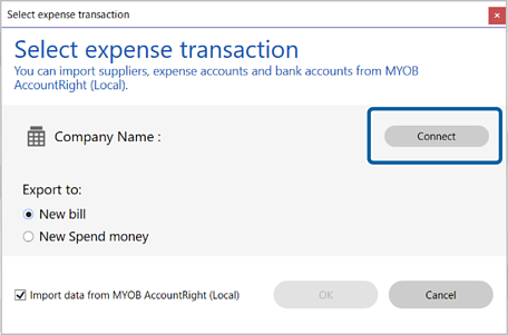 Click Connect and log in to your MYOB AccountRight account if necessary.