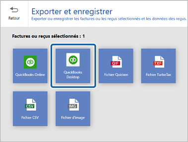 Cliquez sur QuickBooks Desktop dans la fenêtre Exporter et enregistrer.