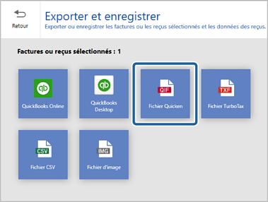 Cliquez sur Fichier Quicken dans la fenêtre Exporter et enregistrer.