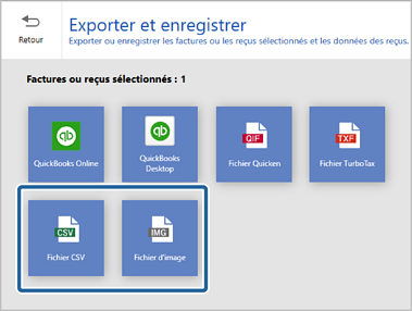 Vous pouvez enregistrer les données des factures ou des reçus dans les formats suivants :