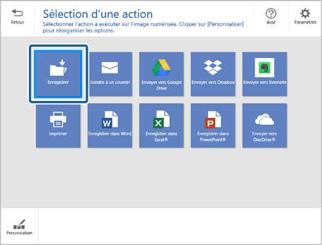 Retour pour revenir à la fenêtre Sélection d'une action, puis cliquez sur