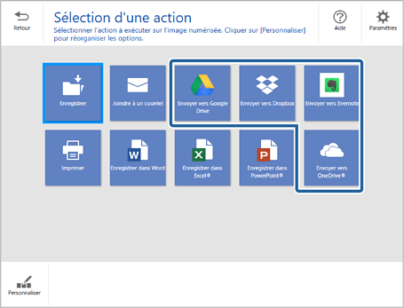Vous pouvez enregistrer les images numérisées dans les services en nuage suivants :