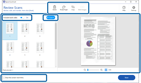Le scanner numérise l’original et Epson ScanSmart s’ouvre.