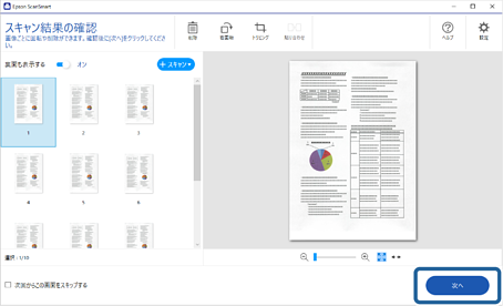 スキャンを開始し、Epson ScanSmartが起動します。