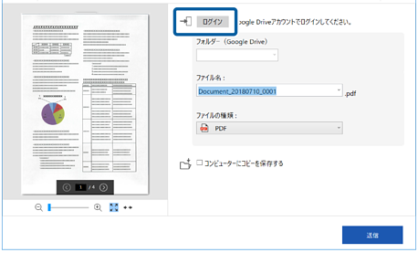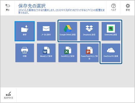 4保存先の選択画面でスキャンした画像の保存方法を選択します。