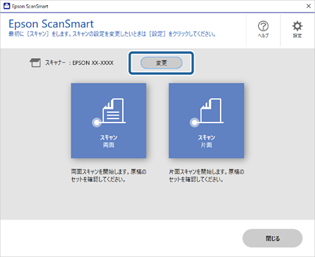 1[Epson ScanSmart]画面で[変更]をクリックします。