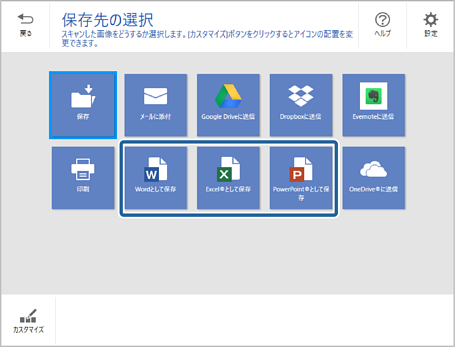 4保存先の選択画面でスキャンした画像の保存方法を選択します。