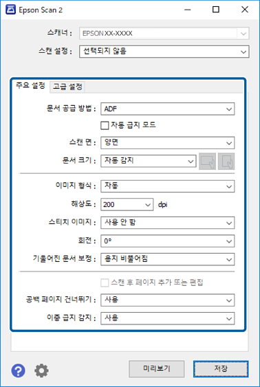 3Epson Scan 2 창이 표시됩니다.