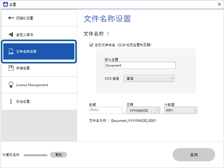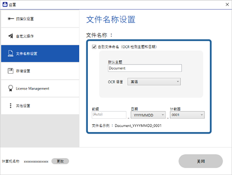 选择 自动文件命名(OCR 检测主题和日期) 以自动输入文件名。