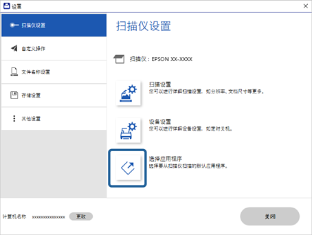 在 扫描仪设置 选项卡上单击 选择应用程序。