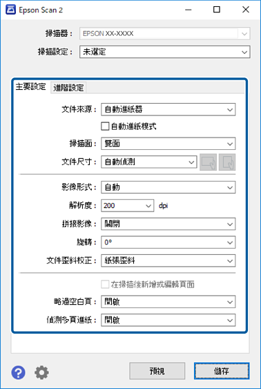 您可變更詳細的掃描設定,例如解像度、文件大小及更多。