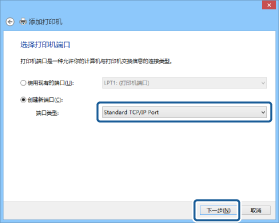 選取[建立新的連接埠],選取[標準 TCP/IP 連接埠]為連接埠類型,然後按一下[下一步]。