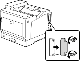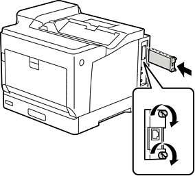 Ако се изведе съобщение с въпрос за актуализиране на фърмуера, когато настройвате опционалния ethernet, актуализирайте фърмуера на принтера, докато се инсталира платката за опционалния ethernet.