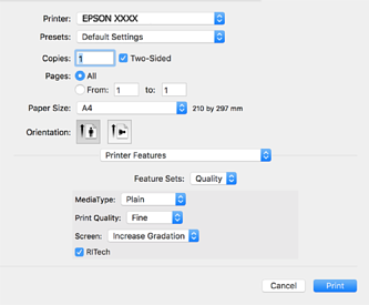 Вижте опциите на менюто от драйвера на принтера за подробности.
