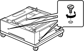 Закрепете касетното устройство за хартия към стойка за принтера с четири винта.