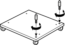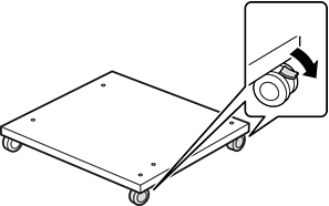 Поставете стойката за принтера върху плоска повърхност и заключете предните колелца.