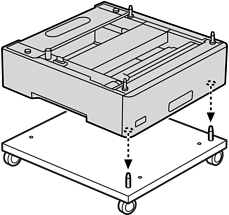 Настройте най-долното касетно устройство за хартия върху стойка за принтера. Изравнете всички отвори на дъното с водещи щифтове.