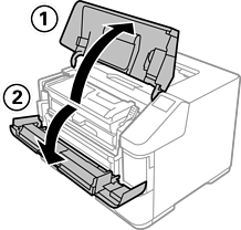 Open the waste toner collector cover (E), and wipe the vent holes with a soft, dry cloth to remove dust and dirt.