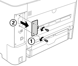 安裝網路套件時,請確定選購界面卡插槽已裝入印表機。