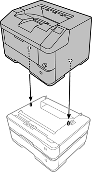 Jika Anda menggunakan dudukan printer, pasang dudukan terlebih dahulu pada unit kaset kertas paling bawah.