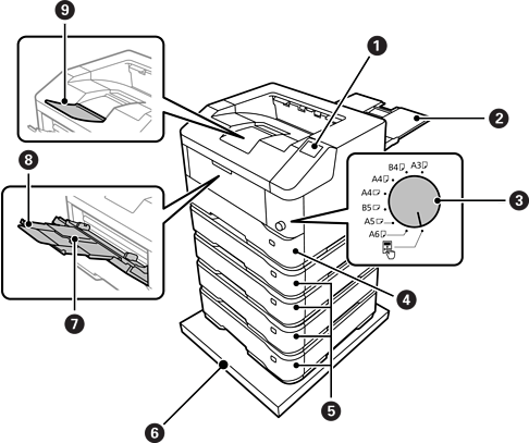 Optional paper cassette units. Loads paper. Cassette 5 is only available for theAL-M8250DN/AL-M8150DN. |