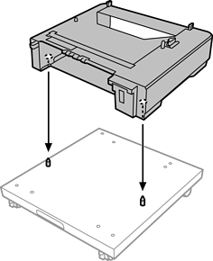 Set the lowest paper cassette unit on the printer stand. Align each of the holes on the bottom with the guide pins.