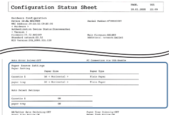 5. After installing the paper cassette units, print a Configuration Status Sheet to check if the optional items are installed correctly.