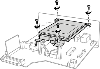Place the HDD by aligning each of the holes with the screw holes on the printer, and then secure the HDD in place with four screws.