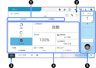 設定項目の一覧をタブで切り替えます。[基本設定]タブでは、よく使われる設定項目が表示されます。[応用設定]タブには、必要に応じて設定する項目が表示されます。 |