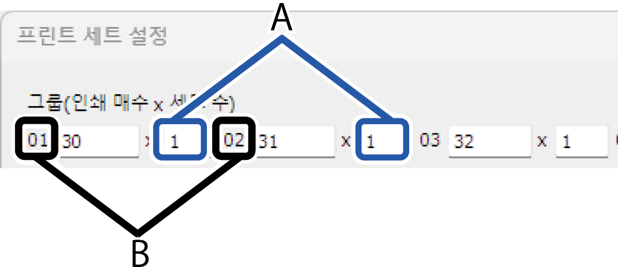 그룹(매수x세트)의 매수와 세트 수를 설정합니다.
