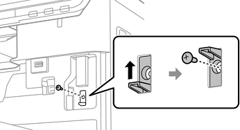 Κατά το κλείδωμα της Wireless LAN Interface-P1, χρησιμοποιήστε ένα σταυροκατσάβιδο για να αφαιρέσετε τη βίδα του μοχλού κλειδώματος, σύρετε την προς τα πάνω και, στη συνέχεια, στερεώστε την με τη βίδα.
