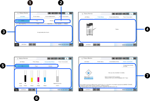 Pilih Status Tugas pada panel kontrol untuk menampilkan menu Status Tugas. Anda dapat memeriksa status printer atau pekerjaan.