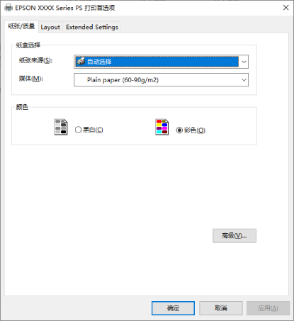 PostScript 打印机驱动程序的菜单选项