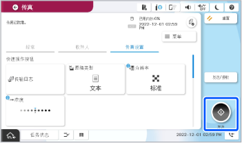 当如以下屏幕所示显示开始发送或接收传真的消息时,表明已建立连接。