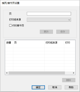 请注意,通过指定页码和打印纸来源插入的单页以及打印的纸张,不能设置为同一页。此外,部分页面可能为单面打印,具体取决于设置。