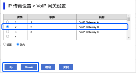 在设置 VoIP 网关的发送条件后,就已经显示设置优先级的屏幕。转至步骤 3。