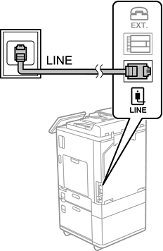 Unganisha kebo ya simu kutoka kwa soketi ya ukutani ya simu au lango la PBX kwenye lango la LINE upande wa nyuma wa printa.