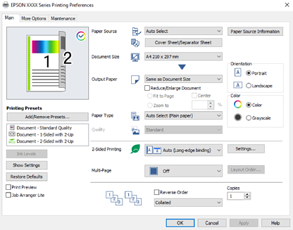 Tazama chaguo za menyu kwa kiendeshi cha kichapishi kwa maelezo.