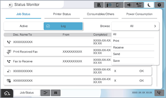Вы можаце праверыць заданні для факса, якія выконваюцца, або гісторыю заданняў.