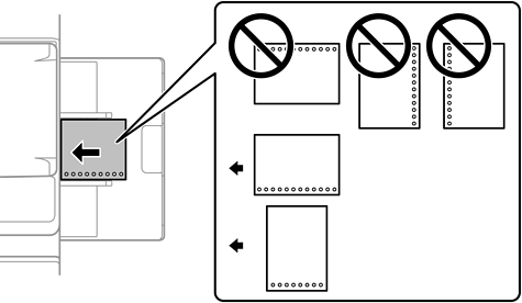 Загрузіце перфараваную паперу бокам з адтулінамі да вас. Загрузка паперы ў няправільным кірунку можа прывесці да захрасання паперы або размазвання чарніла ўнутры прынтара.