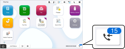 Калі вы карыстаецеся некалькімі наладамі захавання/пераадрасацыі факса, колькасць неапрацаваных заданняў можа адлюстроўвацца як «2» або «3», нават калі быў атрыманы толькі адзін факс. Напрыклад, калі вы задалі захаванне факсаў у папцы «Уваходныя» і на камп’ютары і атрымалі адзін факс, колькасць неапрацаваных заданняў будзе складаць «2», калі факс яшчэ не захаваны ў папцы і на камп’ютары.